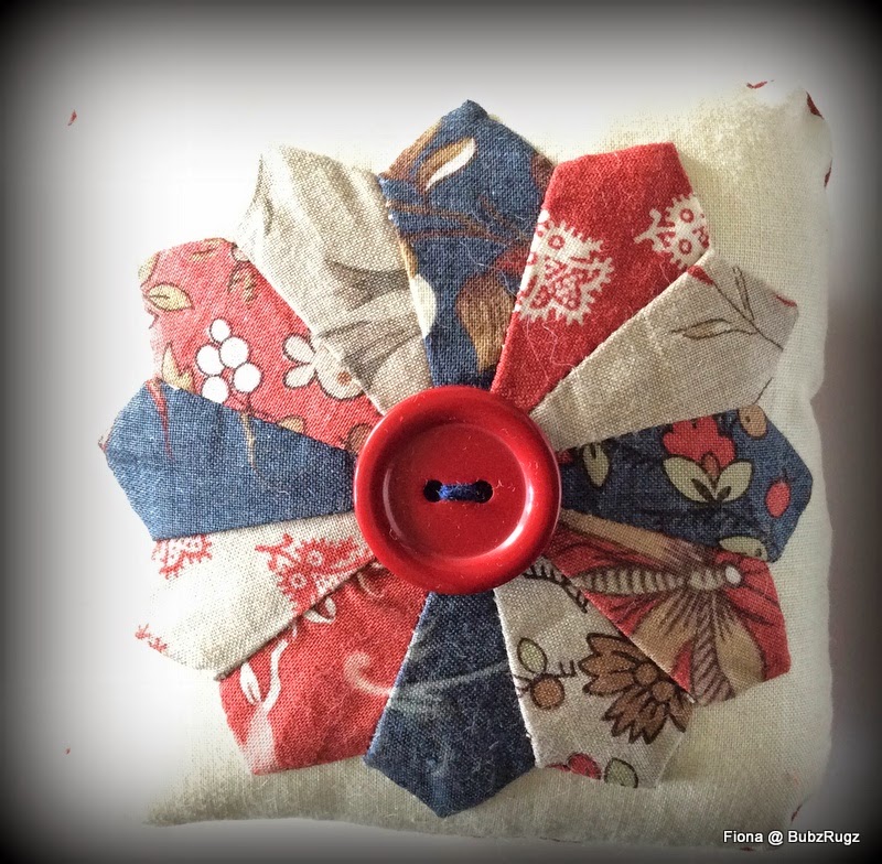 sooo love the quilting on the blades,perfect! The idea of making it a clock is fabulous, clever you. love the little pin cushion and mug rug too.very cute.