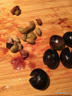For these ones Hubz clobbered them with a mallet and we got the pips out... not pretty and we won't bother again.... they have been soaked in brine for over a week and are now chilling out in some garlic, chilli and origanum olive oil.