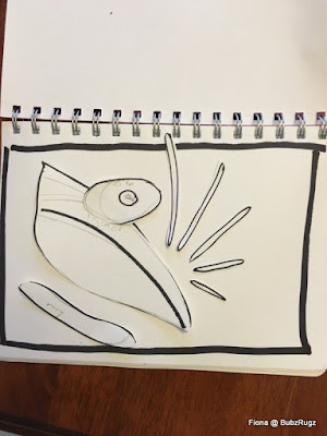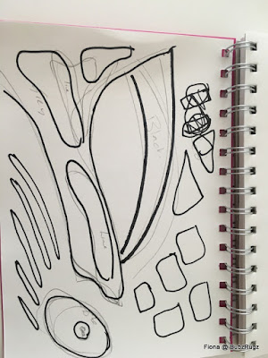Just showing off the process I used - this was my first drawing which I made up from the picture. I was really stuck and Helen suggested using the shapes and then putting them differently - and not to be frightened to overlap pieces