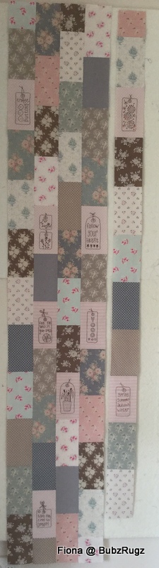 .. then I started placing fabrics to see what they would look like with the stitcheries... then I thought I would sew a few together.... and we have the beginnings of a quilt.....