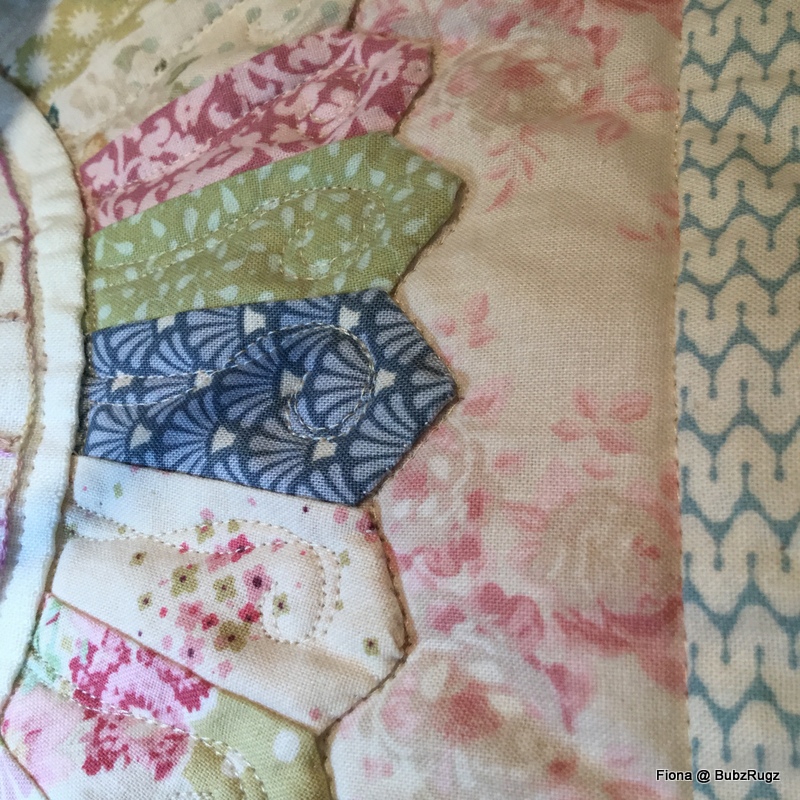 Quite a lot of fiddly quilting in it.... but I think it shows off the stitcheries and the dresdens nicely enough...