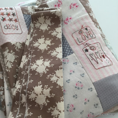 Friday night with the girls was cancelled this week so finding a bit of extra 'machine' time I put the GJ blocks together and added the borders... and stained the blues....
