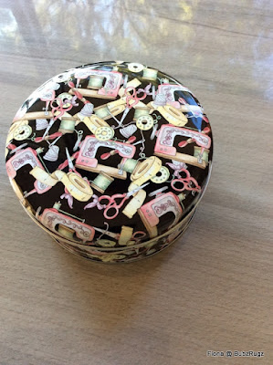 We have a rule of no pressies when we get together - Michelle is such a rebel and brought me one this trip.... look at this adorable tin with sewing things all over it..... I love it...