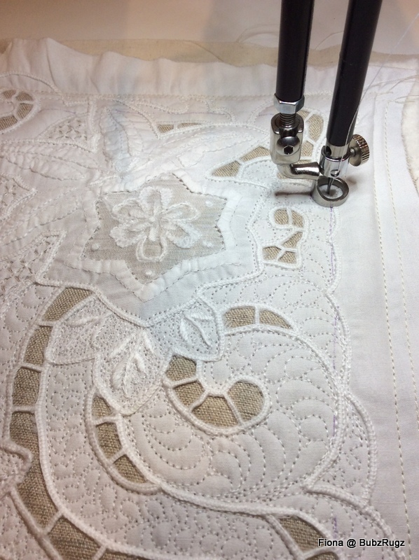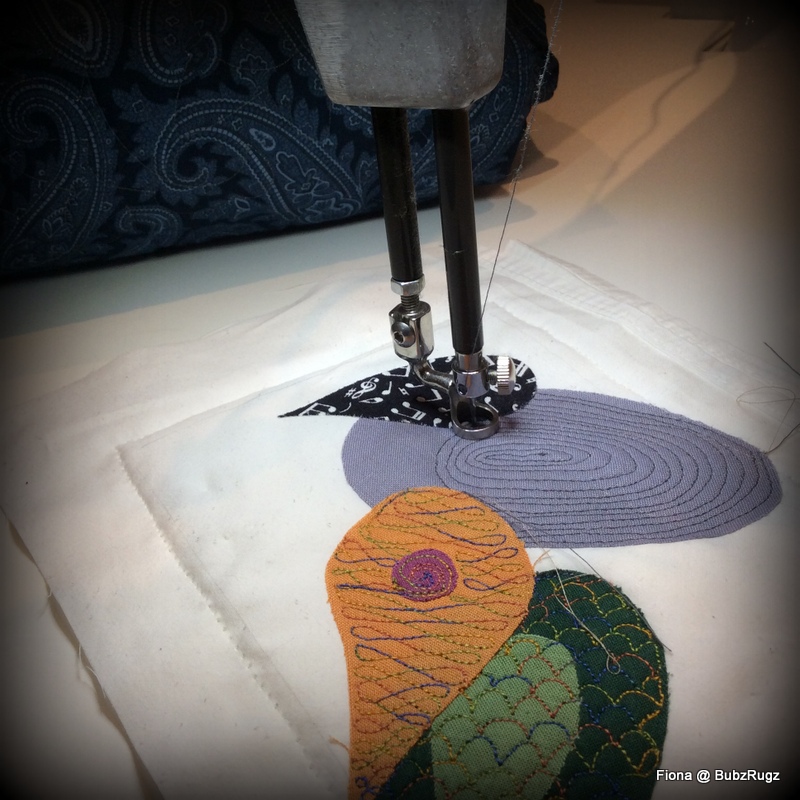 We ended up doing self binding bringing the extra from the backing over to the front.... again a different pattern and colour chosen to sew them down.