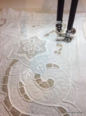 He even did the quilting himself.... used decorative stitches and every single line had to be in a different colour and a different pattern......